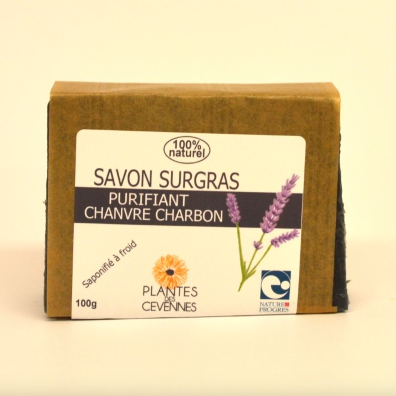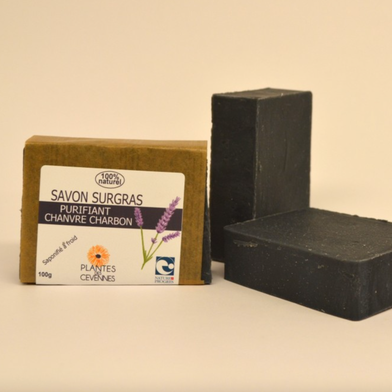 Ce savon artisanal, 100% naturel au charbon végétal et à l'huile de chanvre nettoie et purifie la peau en douceur. Il convient aux peaux à tendance grasse, et à celles qui sont exposées à la pollution et à la fumée.