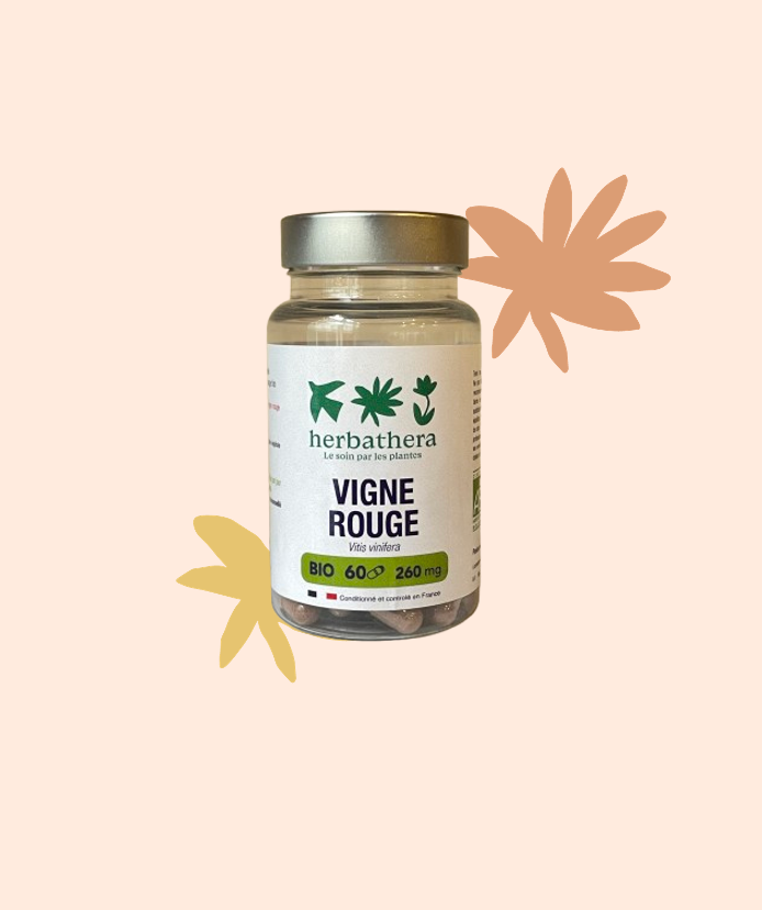 Les feuilles de Vigne rouge sont traditionnellement utilisées pour leurs propriétés veinotoniques et protectrices vasculaires en cas d'insuffisance veineuse, jambes lourdes et de crises hémorroïdaires.